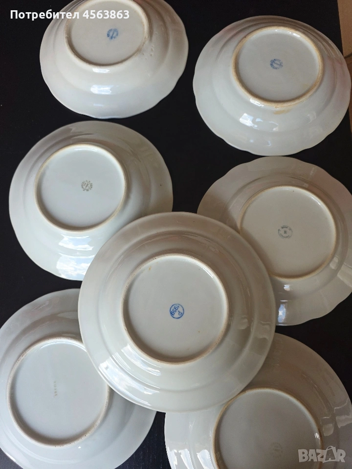 Много стари и изстрадали дълбоки чинии, тип юрганчета на Изида, Развитие и Китка от различни времена с диаметър 22,5см. Следи от ползване и промяна в цвета при някои. Цената е за брой. Налични видимите 7бр.