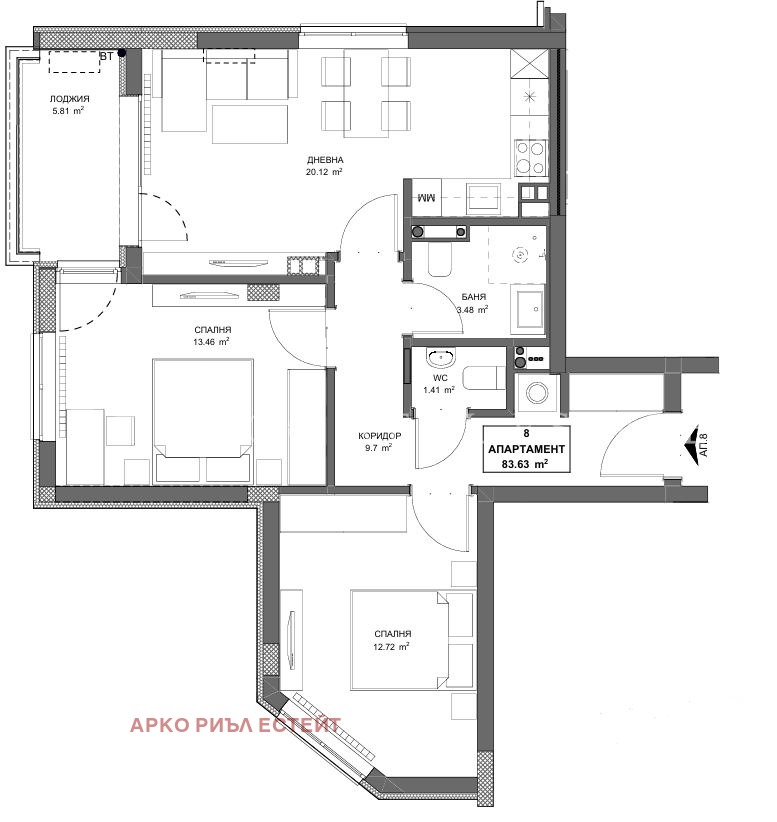 дневна с кухненски бокс и трапезария