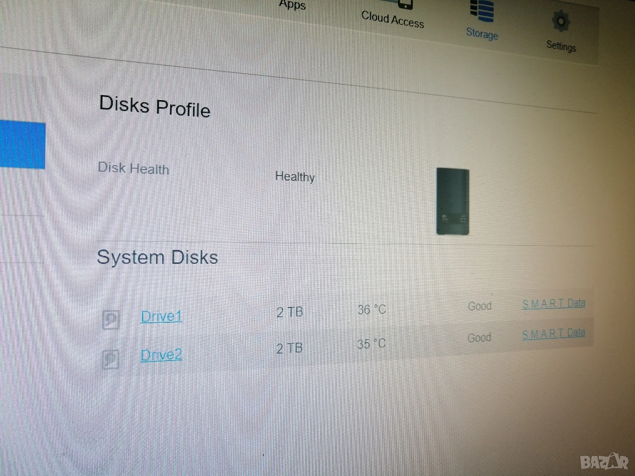 С два харддиска х 2 TB всеки в RAID конфигурация.
