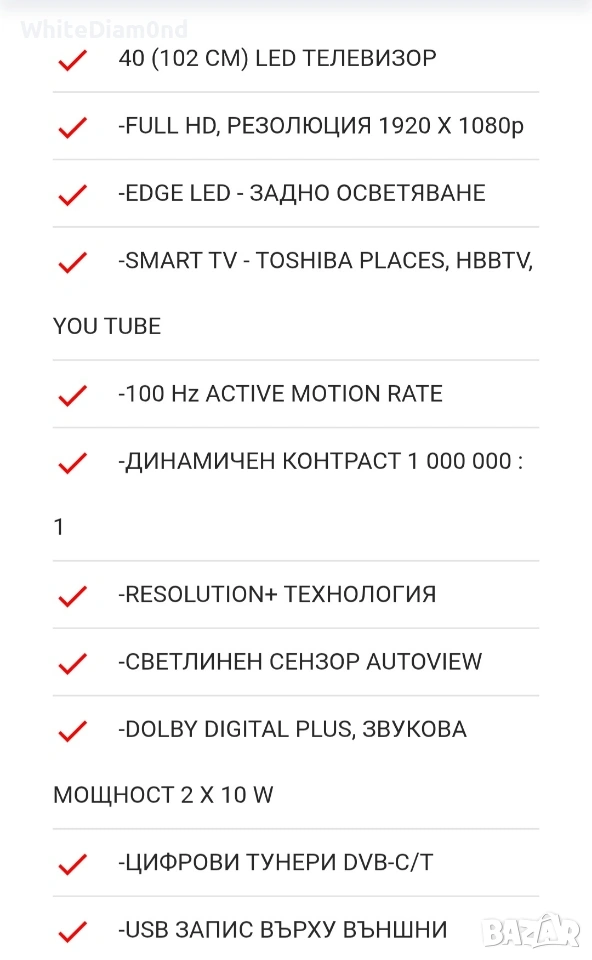 40 " Смарт телевизор Toshiba 40RL933G, снимка 1 - Телевизори - 54344991 40 " Смарт телевизор Toshiba 40RL933G, снимка 2 - Телевизори - 54344991 40 " Смарт телевизор Toshiba 40RL933G, снимка 3 - Телевизори - 54344991 40 " Смарт телевизор Toshiba 40RL933G, снимка 4 - Телевизори - 54344991 40 " Смарт телевизор Toshiba 40RL933G, снимка 5 - Телевизори - 54344991 40 " Смарт телевизор Toshiba 40RL933G, снимка 6 - Телевизори - 54344991 1/6