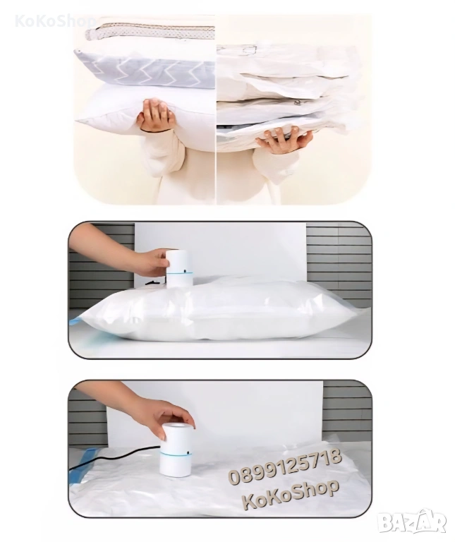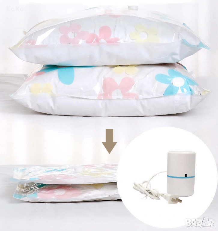 Устройството е идеално за вакуумиране на дрехи, одеяла, спално бельо, възглавници и други обемни текстилни артикули. Чрез отстраняване на въздуха, вакуумните торби заемат много по-малко място, улеснявайки съхранението в гардероби, килери, кутии или куфари. В същото време артикулите са защитени от прах, влага, неприятни миризми и насекоми.