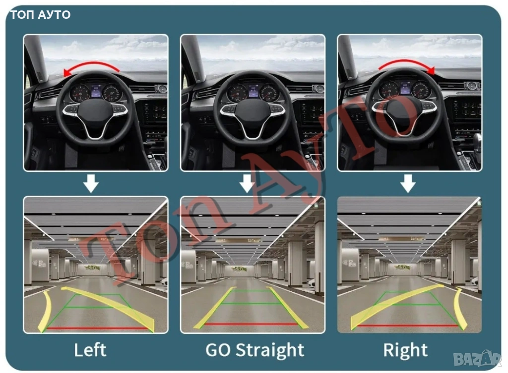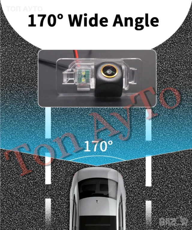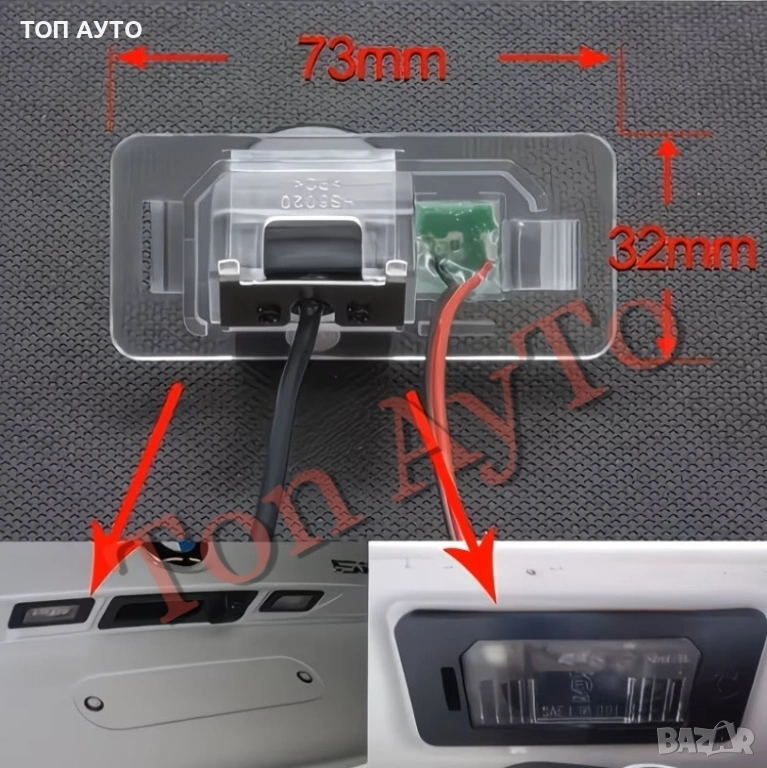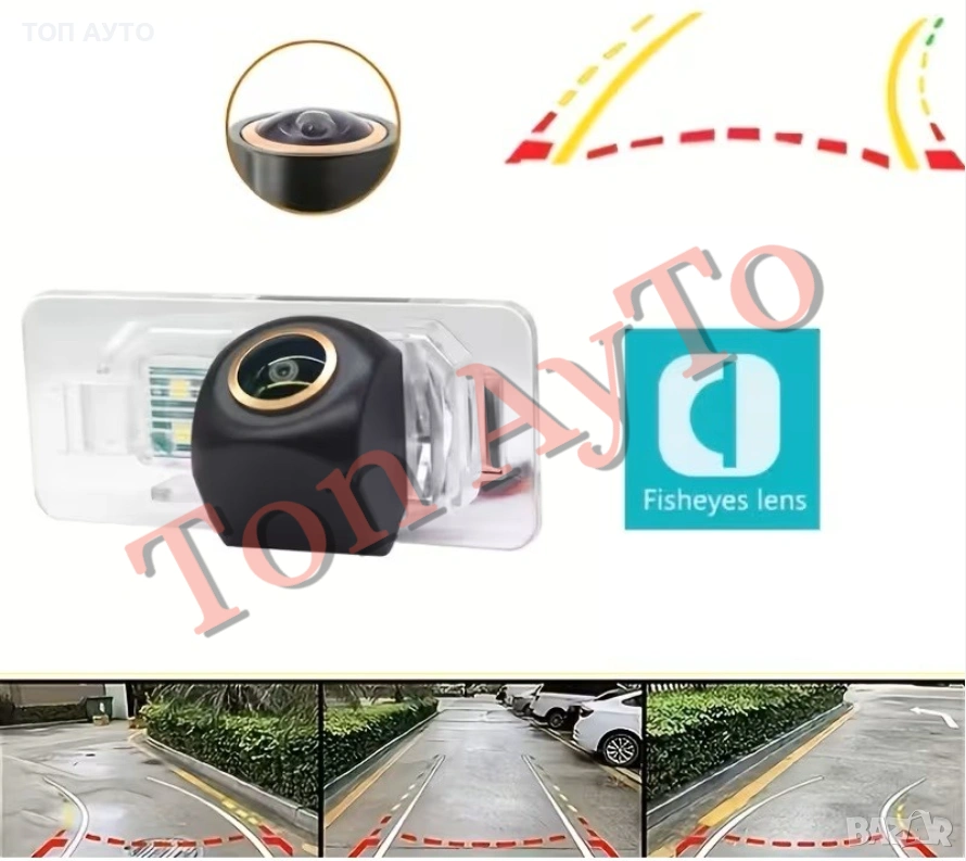 Динамична камера за заден ход - задно виждане за БМВ BMW. Kамерата е с LED осветление и е вградена в плафона за осветяване на номера, като по този начин се монтира изключително лесно и дискретно. Камерата е широкоъгълна, динамична, с насочващи линии.