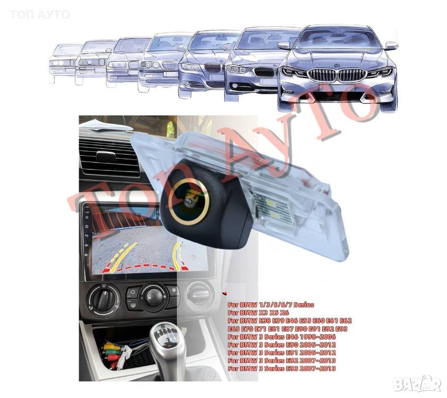 Динамична Камера Плафон БМВ BMW Е81 Е87 Е46 Е90 Е91 Е92 Е93 Е39 Е60 Е61 Е63 Е64 Е38 Е65 Е66 Х3 Х5 Х6