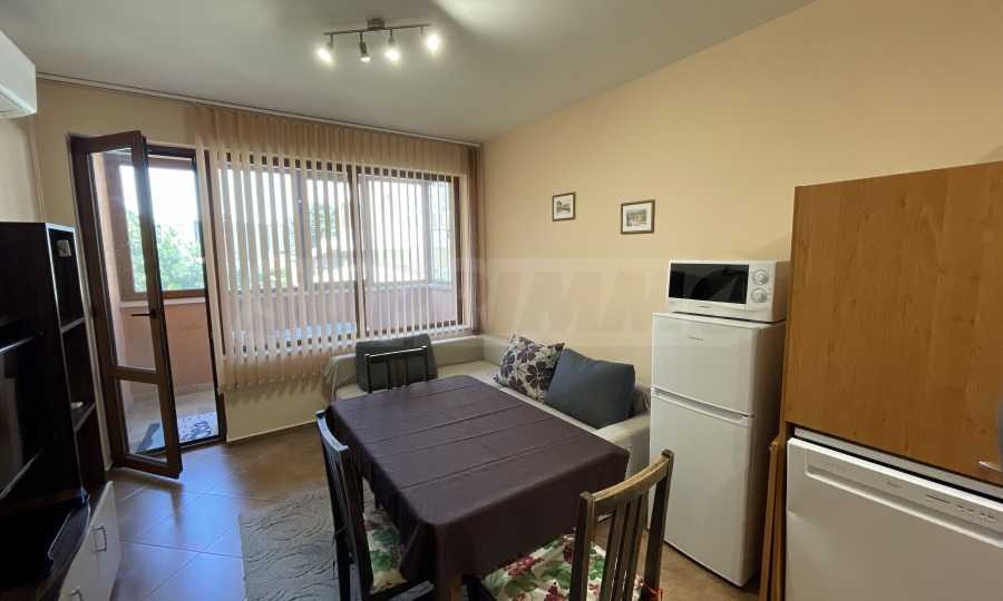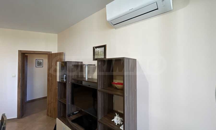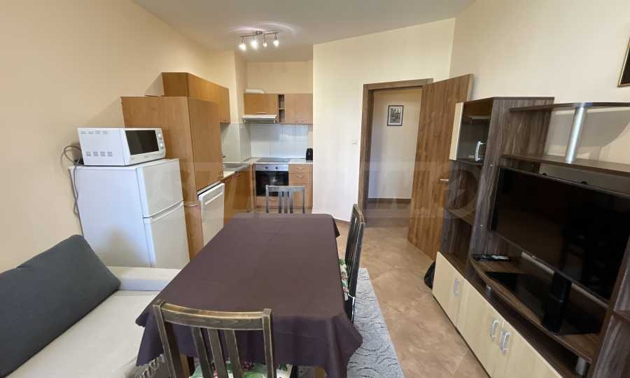 Апартаментът е напълно обзаведен и оборудван с всичко необходимо за живеене като мебели и ел. уреди.