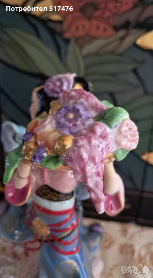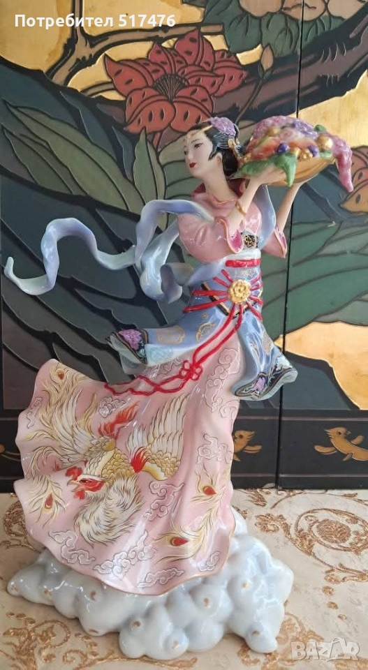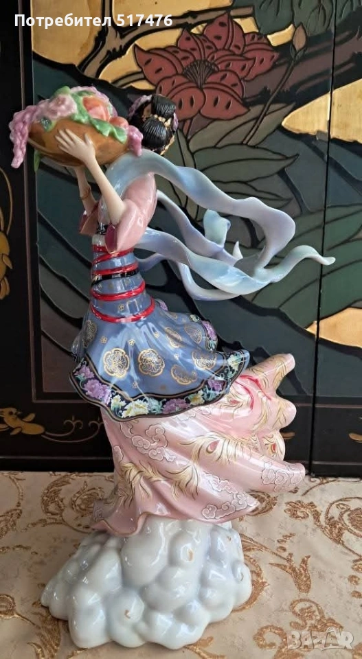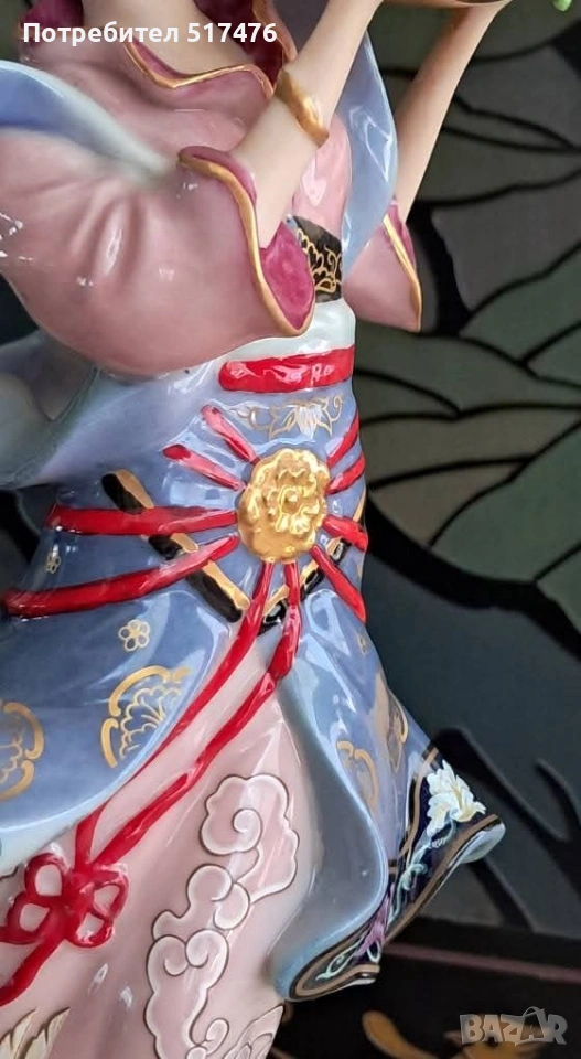 Изработена е от висококачествен порцелан , ръчно рисуван, ръчно декорирана и номерирана. Акцентирана е с 24- каратово злато. Изобразява великолепно облечена азиатска жена носеща кошница с цветя, а сини панделки сякаш се веят от вятъра.