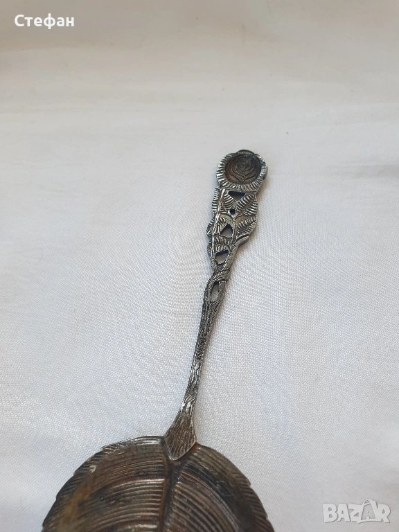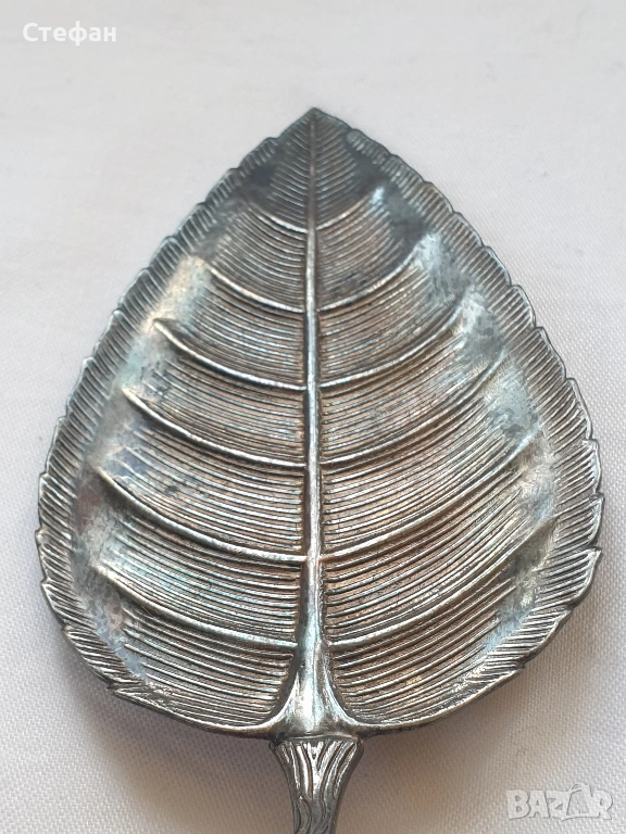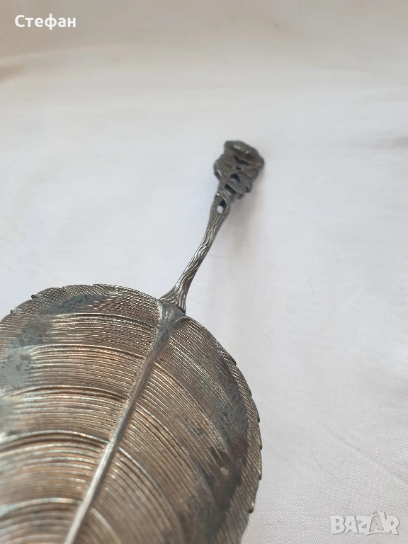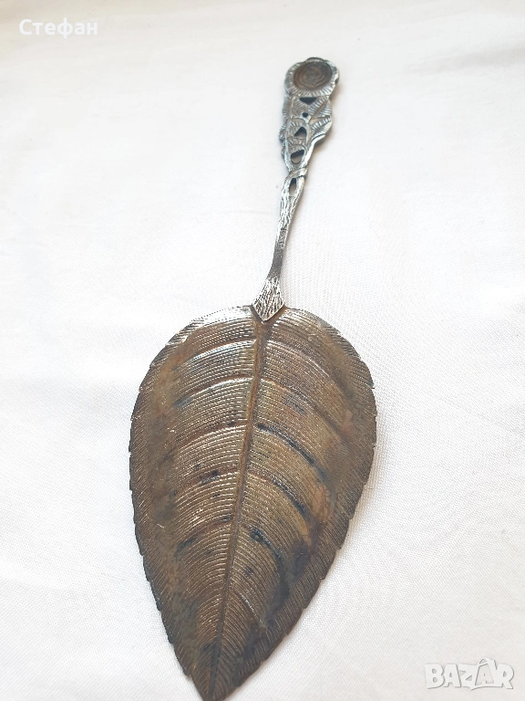 Посребрена лопатка във формата на листо с патина, произход -