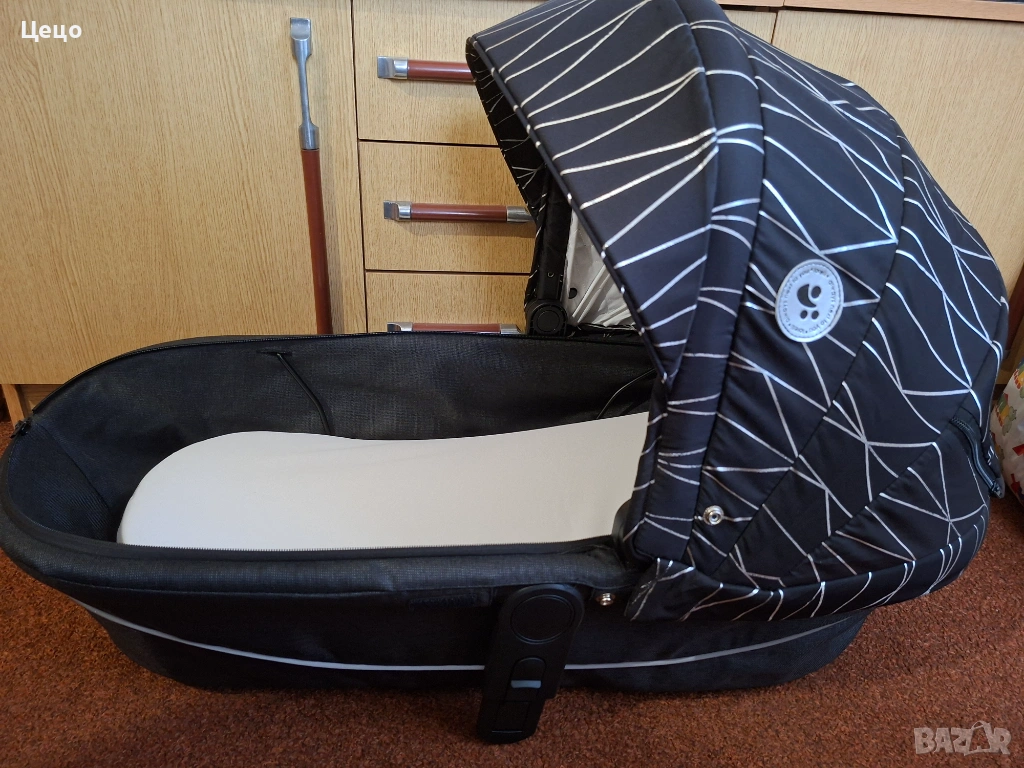 Комплектът обикновено включва кош за новородено, седалка, столче за кола (0-13 кг) и чанта за аксесоари, осигурявайки всичко необходимо за разходки от първия ден.