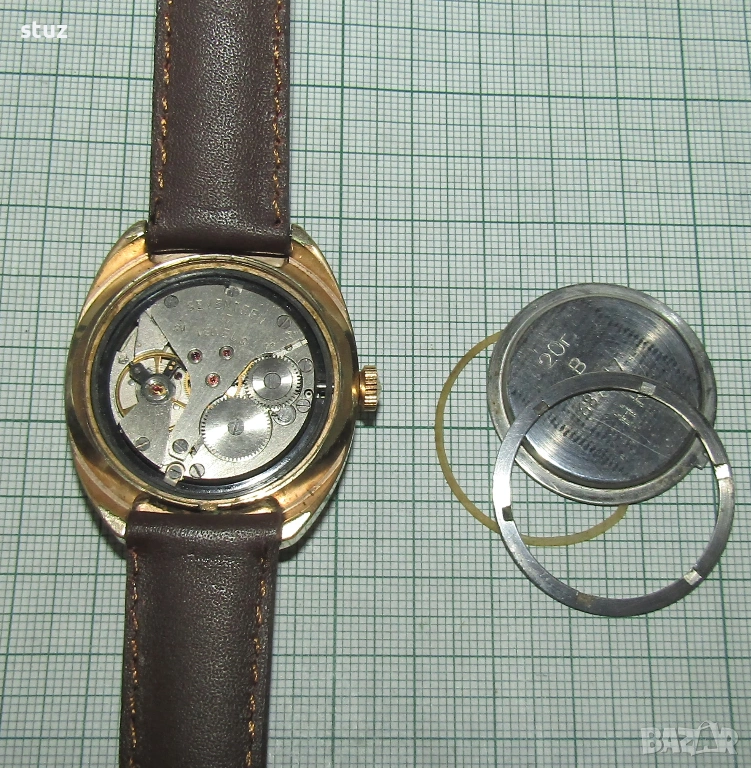 Профилактиран, с ново стъкло, нова оригинална коронка и нова кожена каишка, работи отлично, датник превърта.