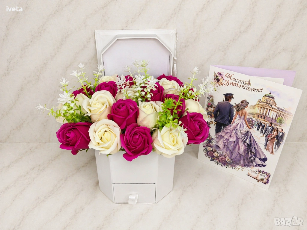 🎓 Кутии с цветя за абитуриентски бал 🎓, снимка 1 - Ръчно изработени сувенири - 54346039 🎓 Кутии с цветя за абитуриентски бал 🎓, снимка 2 - Ръчно изработени сувенири - 54346039 1/2