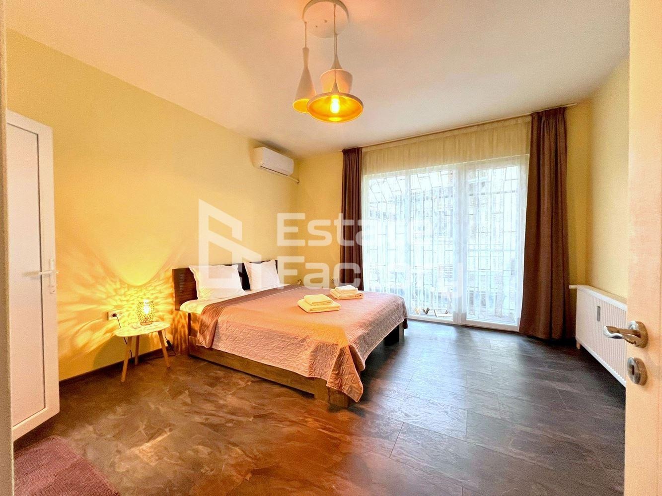 Estate Factory предлага тристаен апартамент под наем. Апартаментът е напълно обзаведен, след основен ремонт с площ от 89 кв.м., състои се от дневна с оборудван кухненски бокс, с пълен набор от бяла техника, включително съдомиялна, две спални, две бани с тоалетни, мокро помещение и тераса с излаз към голям вътрешен двор с достъп от имота. Изложение И/Ю. Отопление на ТЕЦ, монтирани климатици във всички помещения.