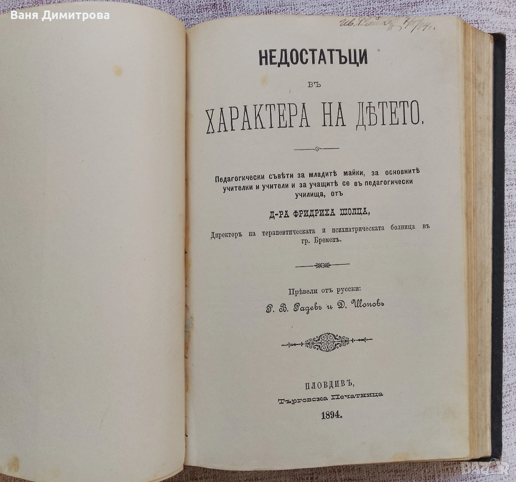 Автор и Преводач: Педагогически етюд от Ф. Адлеръ, преведен от Ю. Пенаревъ.