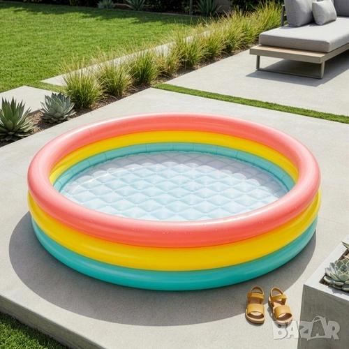 Надуваем детски басейн INTEX 57412NP Rainbow – 114 x 25 см, 3 ринга, 131 л