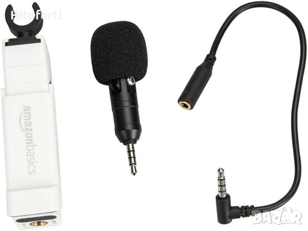 Свързва се с 3,5 мм аудио жак на смартфон (3,5 мм TRRS изход); включен е удължителен кабел; не се изисква батерия или софтуер; с 1-годишна ограничена гаранция от Amazon Basics