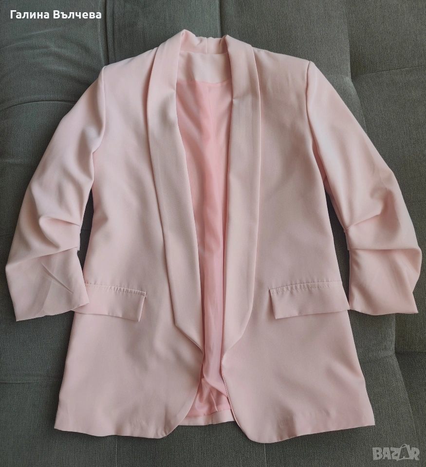 Много красиво пролетно сако, поръчвано от онлайн магазин "Напудрени". Размер S. С подплата, не се мачка, бледо розово. Цена - 10 евро.