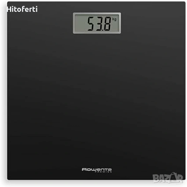 Удобен: с голям, лесен за четене LCD дисплей и голяма платформа (30 x 30 см), цифровият кантар Rowenta Premiss предлага изключителен комфорт и лекота на използване
