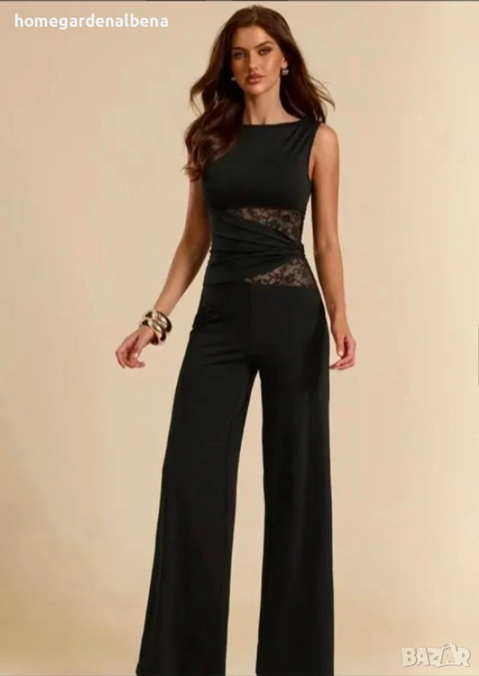 Ключови думи: черен гащеризон, дамски гащеризон с дантела, официален гащеризон, елегантен гащеризон за парти, дълъг гащеризон, гащеризон размер М Л, гащеризон за специален повод, доставка с Еконт, преглед и тест, дрехи Bazar.bg, Home & Garden by Albena, V&B Fashion Hub