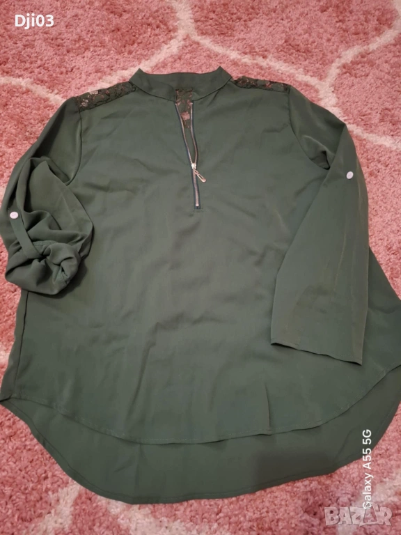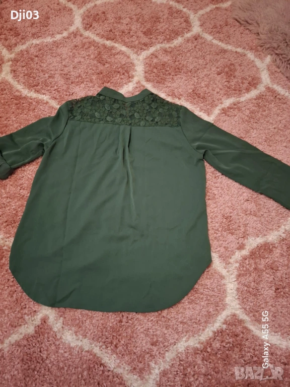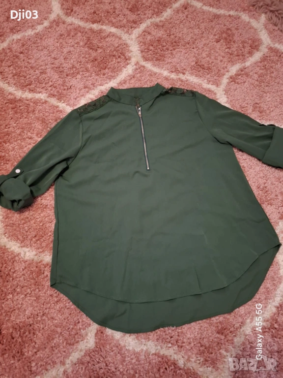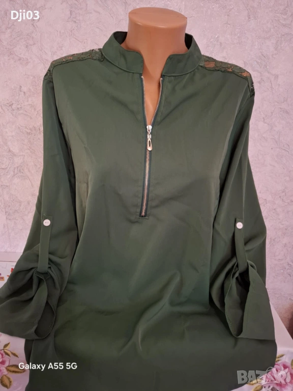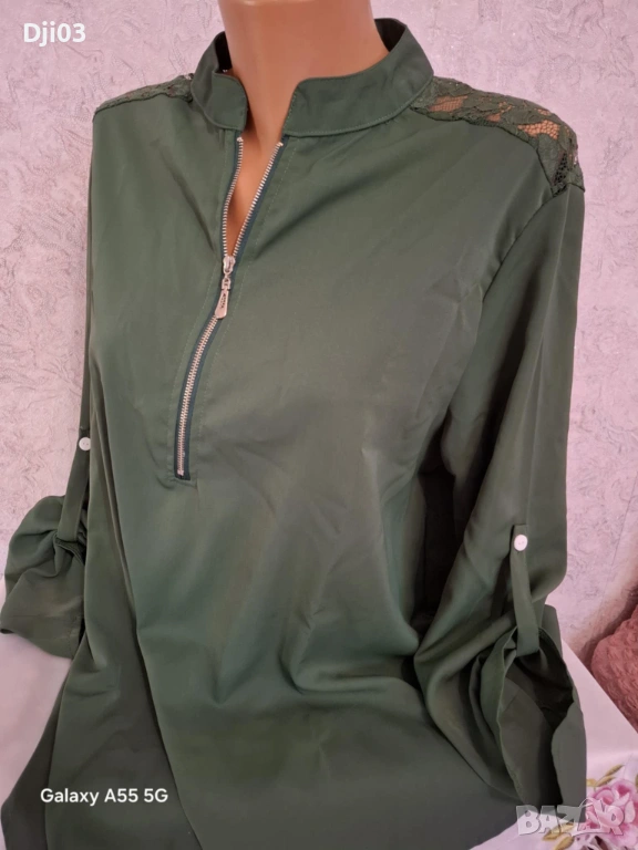 Дамска риза с дантела ,основен цвят зелен