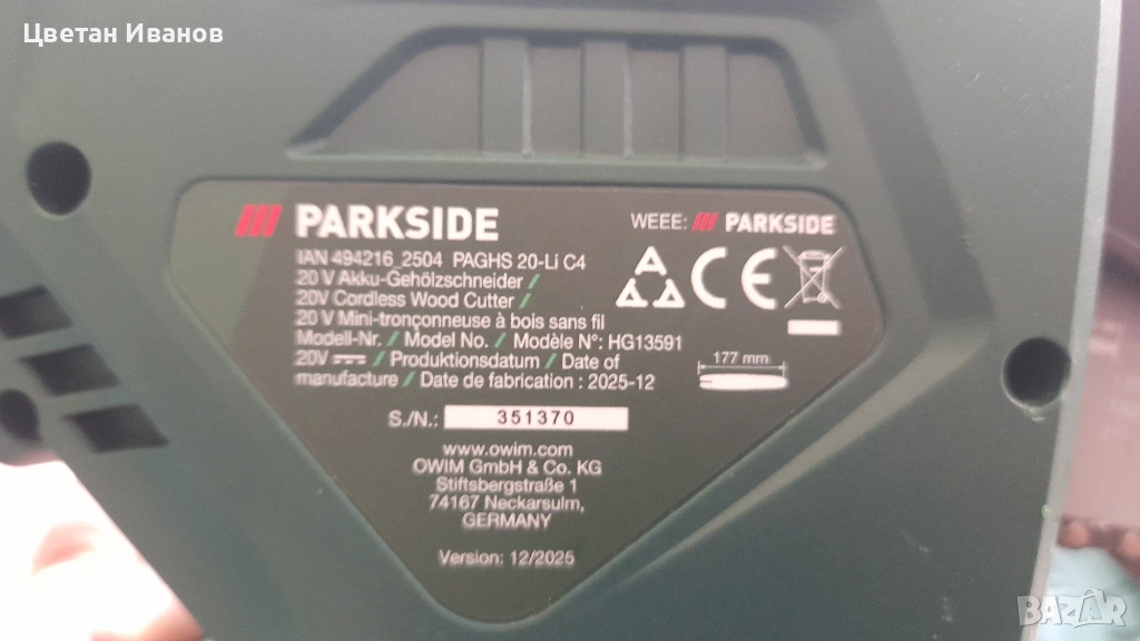Акумолаторна резачка Parkside 20v → Обява 54348195