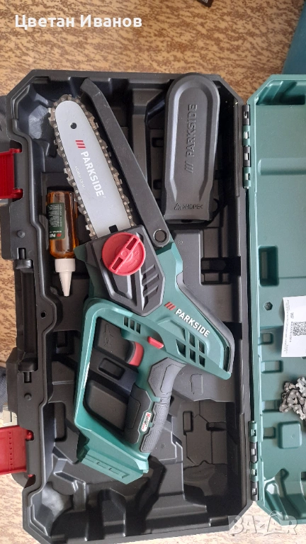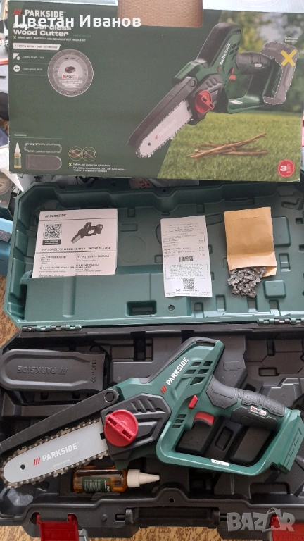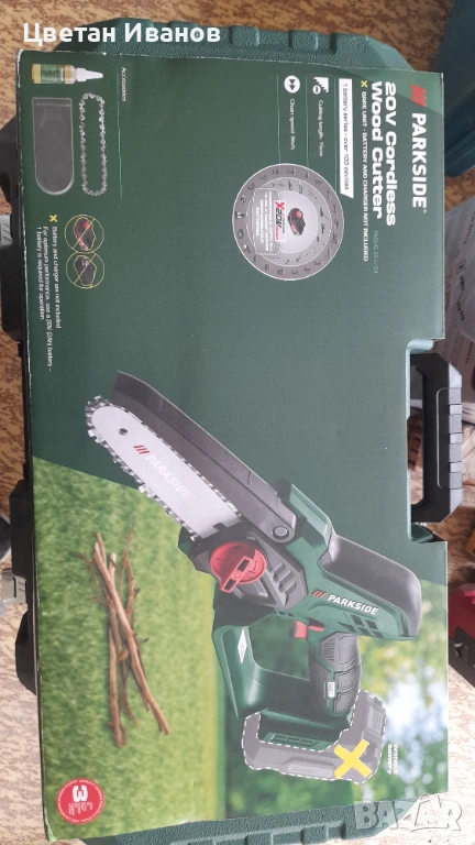 Продавам чисто нова акумулаторна резачка Parkside 20v. Машината е с гаранция към Лидл България. Изпращам и касоватя бележка към нея. В комплекта има два броя вериги + масльонка. При необходимост мога да добавя и батерии, които се заплащат отделно.