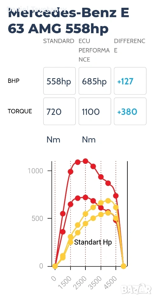 ... Изпращам ви предварително генерирана снимка с изчислени к.с. и въртящ момент след Stage 1 power boost за вашия автомобил (показани примери на снимки 3, 4, 5 и 6 в обявата).