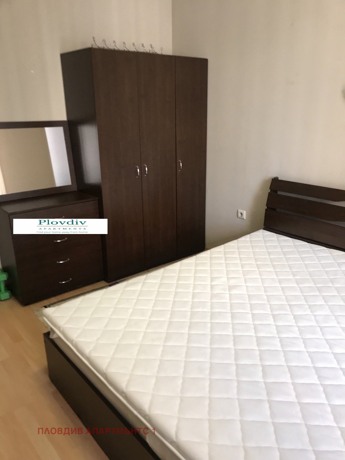 Уютна спалня: Голямо двойно легло с качествен матрак, голям трикрилен гардероб и скрин с огледало.