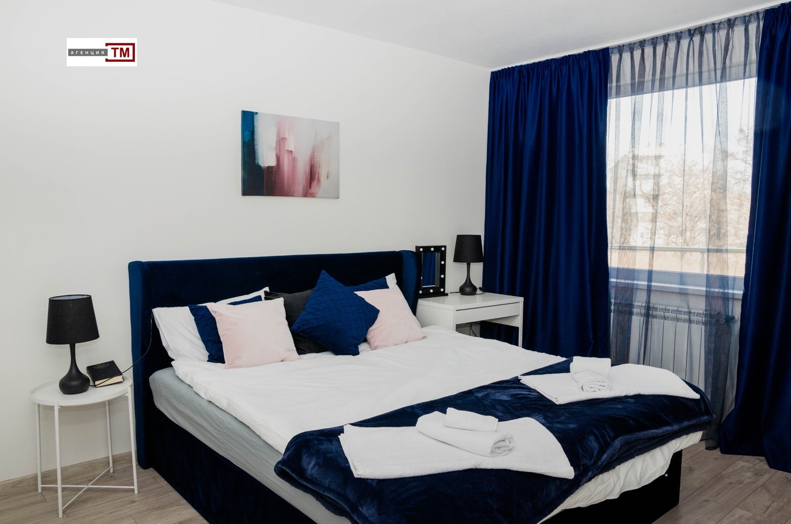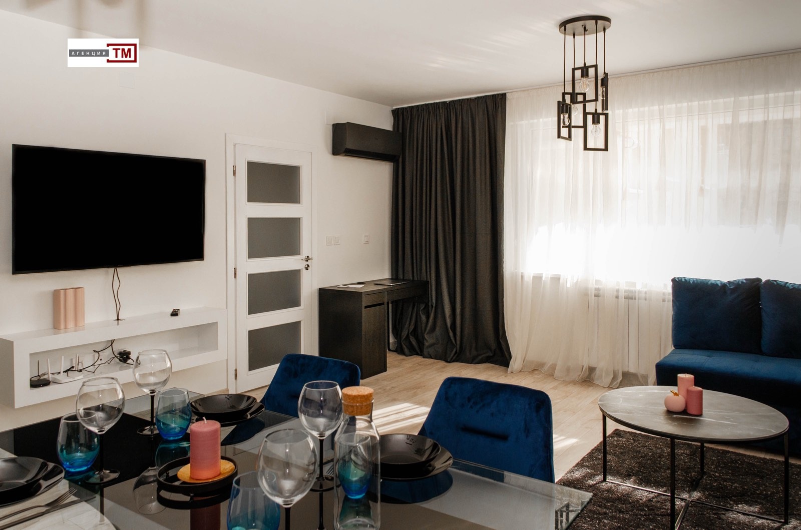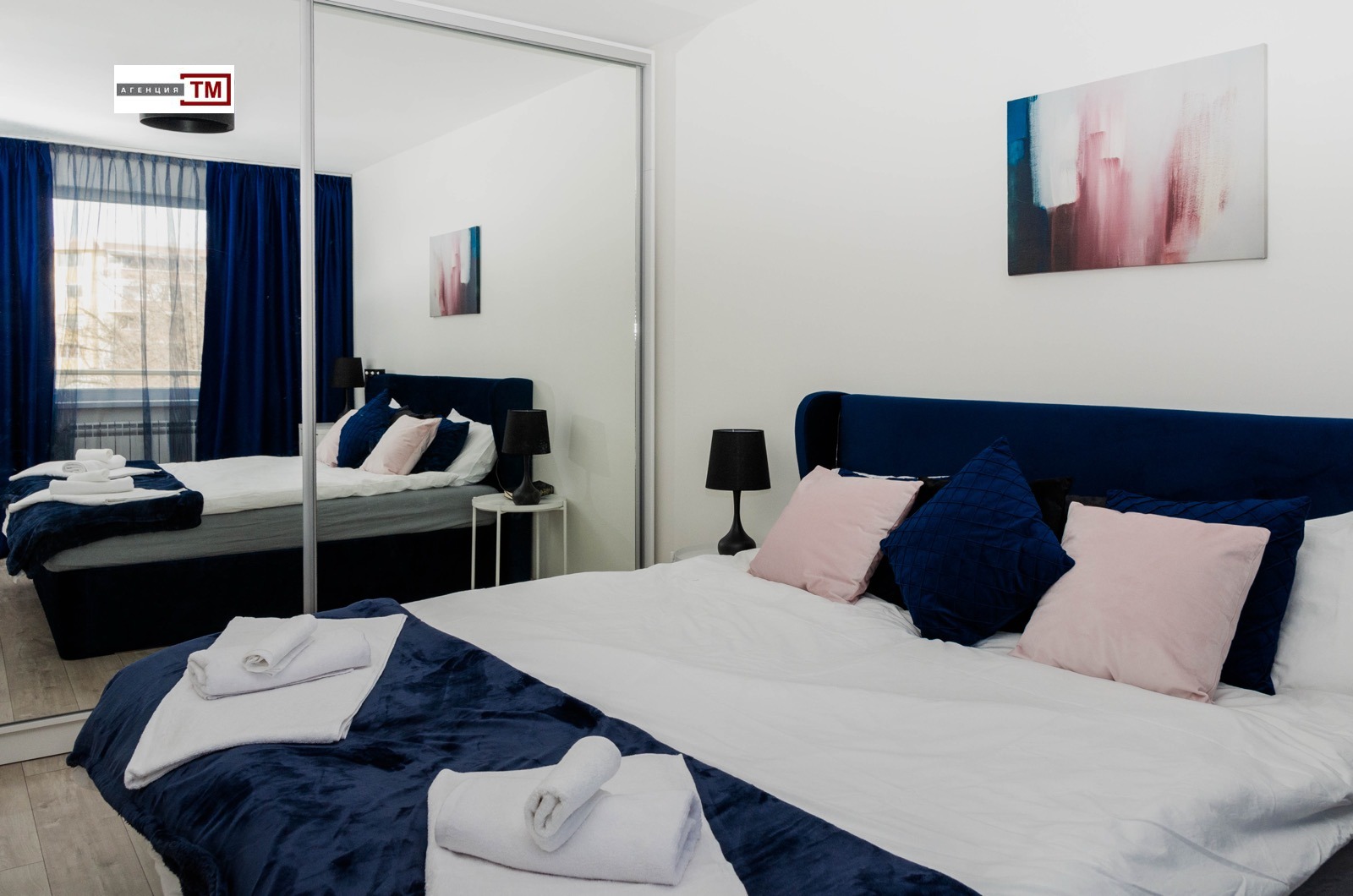ТМ Имоти отдава под наем луксозен апартамент, състоящ се от просторна,35 кв.м. дневна с бокс, две големи спални, коридор, баня с тоалетна, втора тоалетна и две големи тераси. Апартаментът е газифициран и обзаведен с много вкус и мисъл за удобство и комфорт. Всички мебели са по пъръчка, изработени от висококачественни материали, а електроуредите са висок клас. Изложението е юг- изток, етажа е първи , висок, над магазин. Таксата за поддръжка на сградата и зелените площи се поема от наемодателя. Свободно паркиране около сградата , построена от един от най-добрите строители в града с луксозни общи части и видеонаблюдение. В непосредственна близост има училища, детски градини, парк и големи хранителни вириги. При дългосрочно наемане наема се договаря. Огледи на тел. 0889112202 след 15.06.