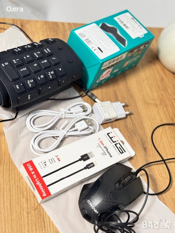 Нова клавиатура, мека мишка, употребявана, нови кабели. Всичко 15