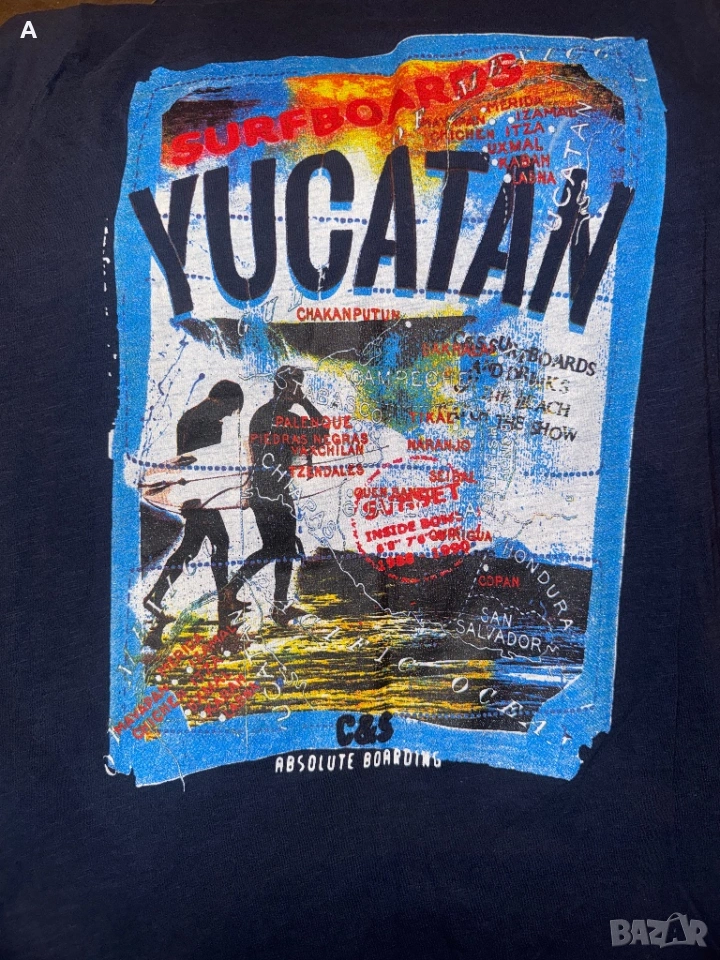 Сърфистка тениска на Cotton & Silk, със лого Yucatán, и други емблематични места за сърф!! Тениската е 100% памук и е в отлично състояние. При интерес пишете на лично.