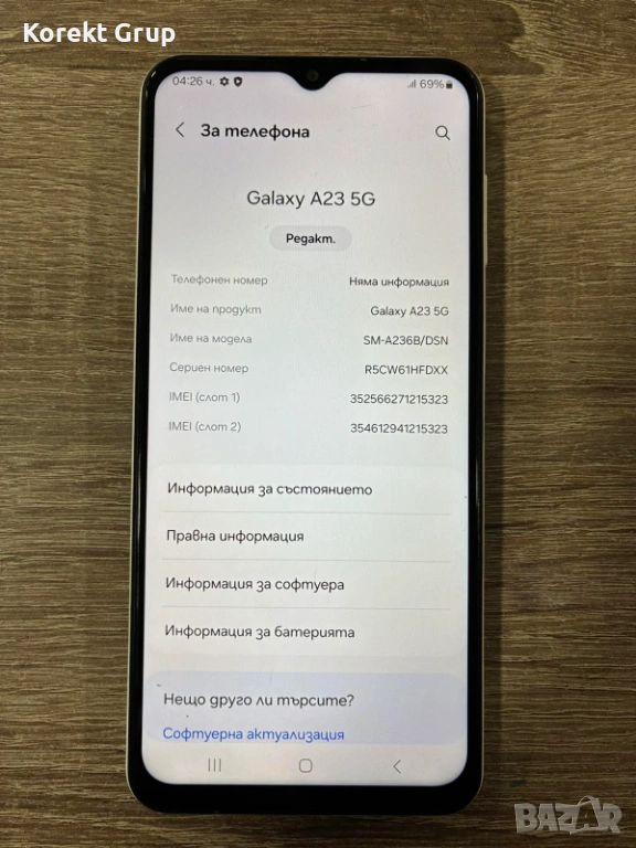 Продавам Samsung A23 5G в добро състояние със следи от употреба има леки по дисплея задната част на телефона е запазена има вградена 128гб вътрешна памет.Може да се види на място за гр.Варна или да се изпрати по Еконт с преглед и тест..