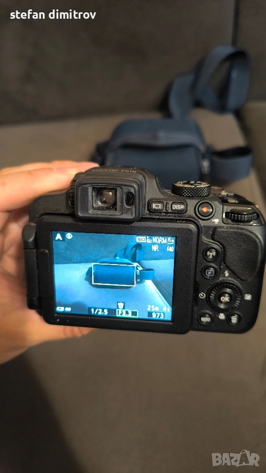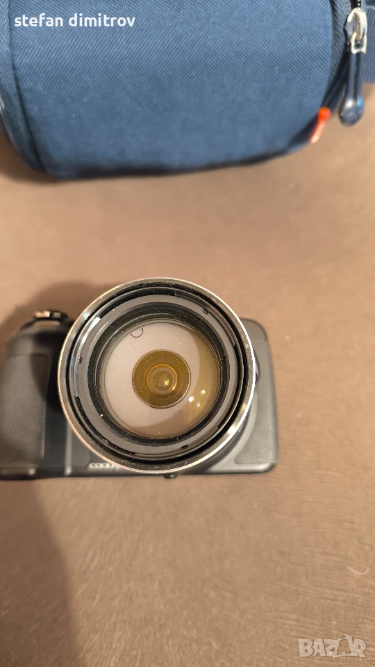 Фотоапарата работи отлично единствената забележки липсва оригиналното зарядно ,но зареждането на батерията става и с usb кабела и предпазната капачка на обектива не оригиналната а е поръчвана друга на марката Hama .