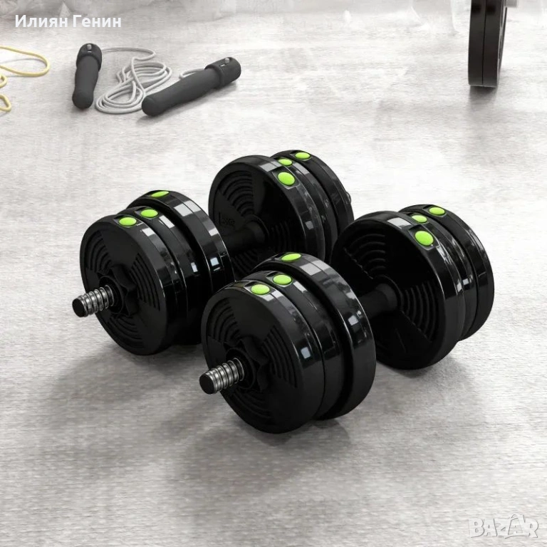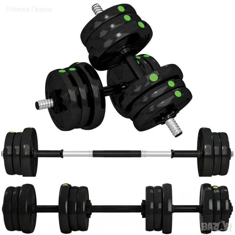 Комплект дъмбели SPORTNOW 2 в 1, щанга и дъмбел, 20 кг, неплъзгащ се, подходящ за пода, черен/зелен - 35.00 €.