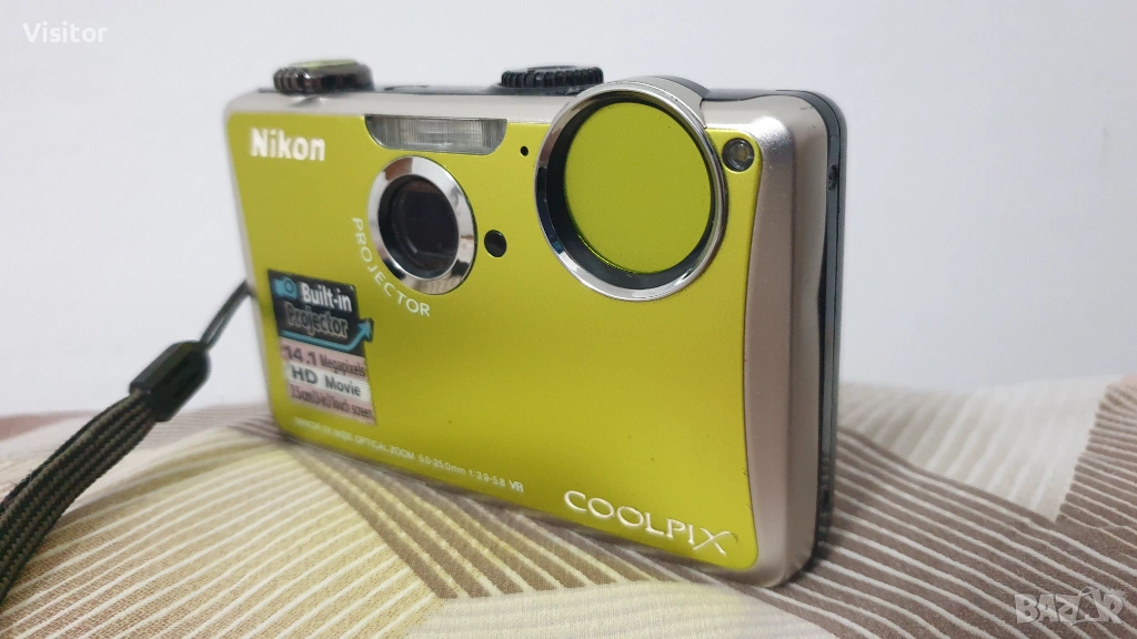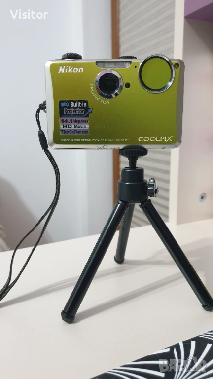 Nikon Coolpix S1100pj с тъчскрийн дисплей.Фотоапарата е със запазен външен вид с приятен светлозелен цвят. Лек и удобен за носене.Всички функции работят безотказно. Има меню на английски и други езици. Благодарение на 14.1 МРх матрица,обектива който е с 5х оптично увеличение и с фокусно разстояние 28-140 мм прави качествени снимки на близко и далечно разстояние.Фотоапарата записва видео HD H.264. Има и вграден проектор с който могат да се гледат снимките на екран или на стена.Батерията е достатъчна за направата на снимки за цял излет.С помоща на вградената светкавица това фотоапаратче е идеално за направата на снимки при семейни тържества в стая и на други затворени помещения! Към фотоапаратчето предлагам - оригинална батерия, SD карта,оригинален кабел за прехвърляне на данни към РС/компютър/