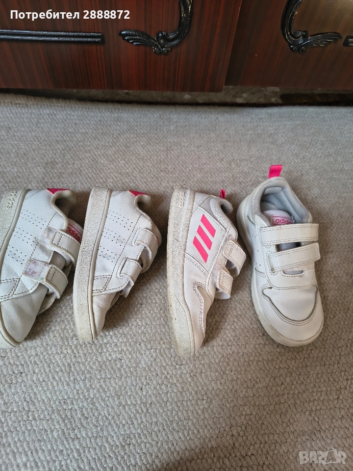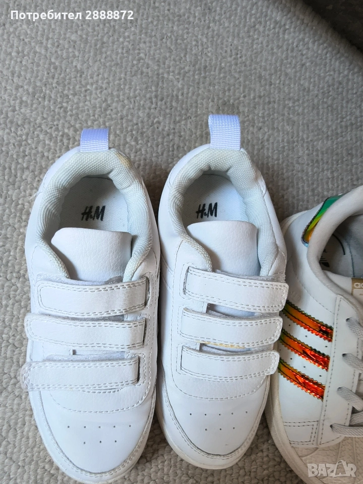 Маратонките са запазени и в добро състояние. Три от щифтове са на марката Adidas, a напълно белите са h & m . Започват от размер 24 до 28 номер.