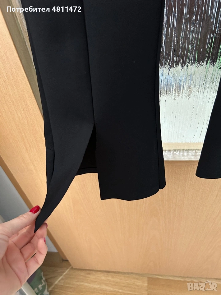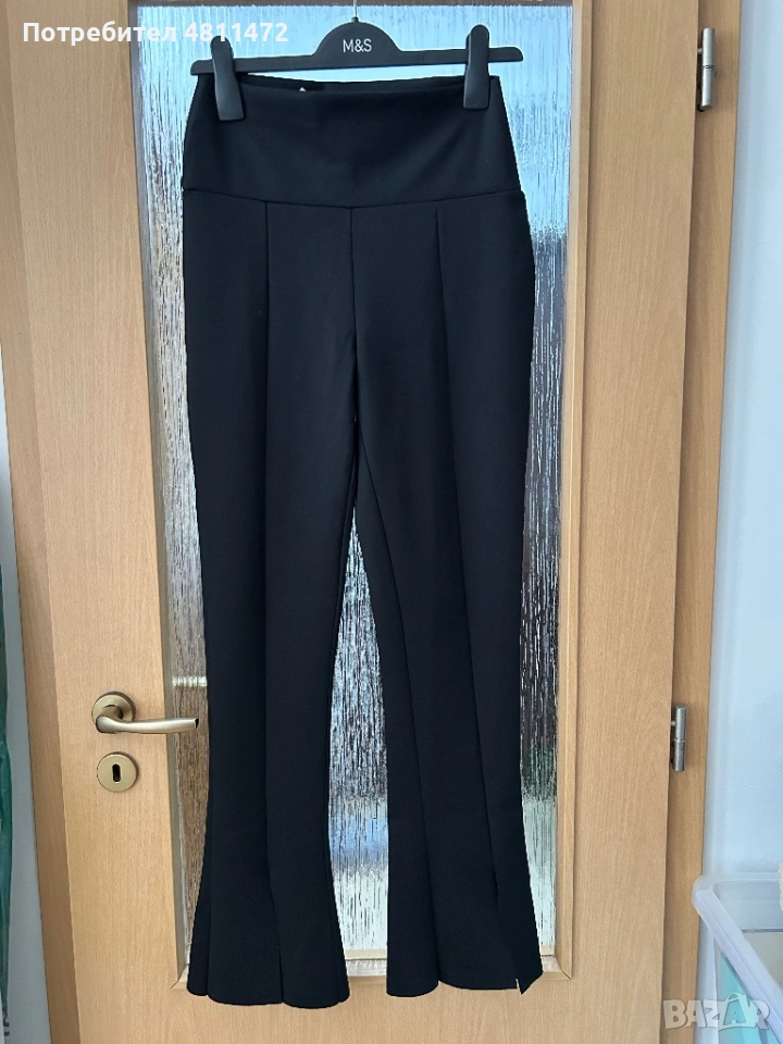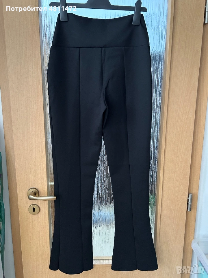 Моделът е с висока талия и леко разкроени крачоли (flare), което издължава силуета и стои много елегантно. Подходящ както за официална визия, така и за по-стилен ежедневен аутфит.
