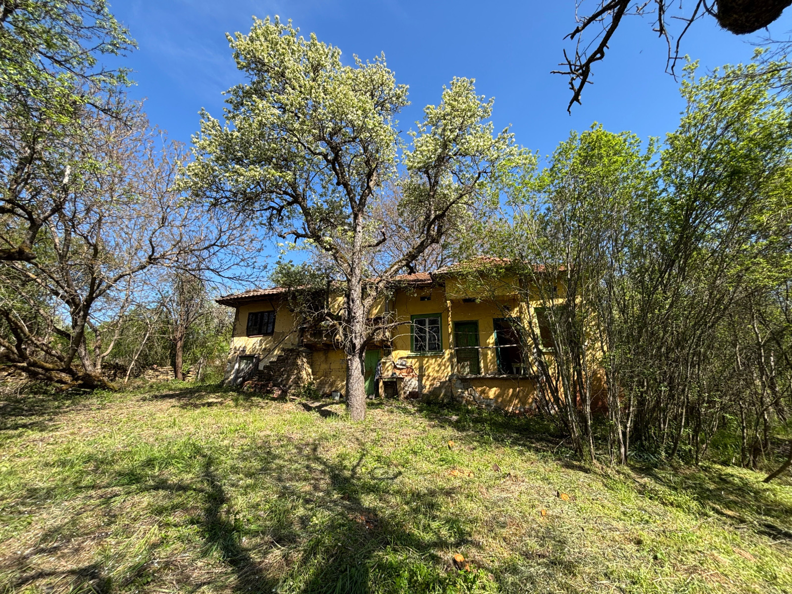 - Просторен двор с красиви стари дървета, включително орехи