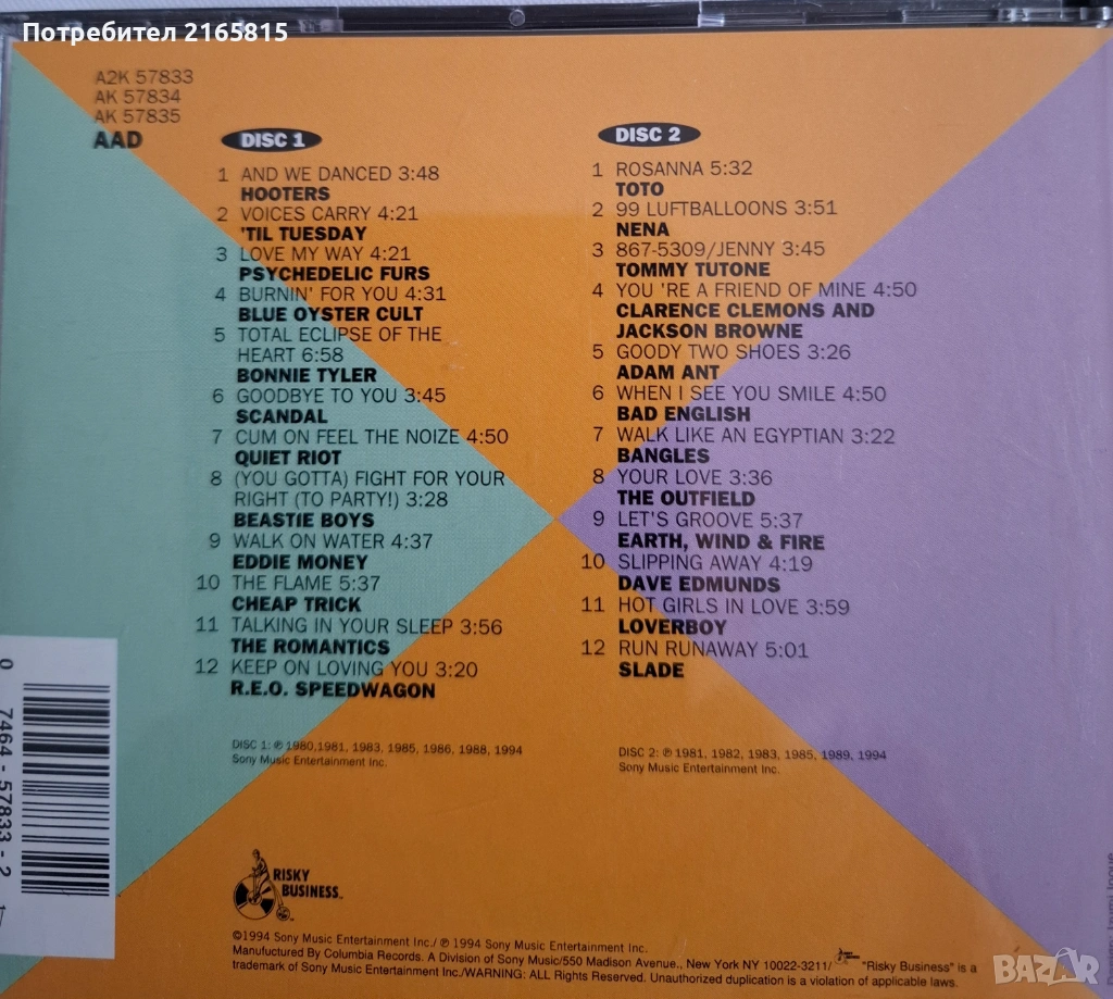 Оригинален двоен диск поп и рок хитове от 80те → Обява 54350181