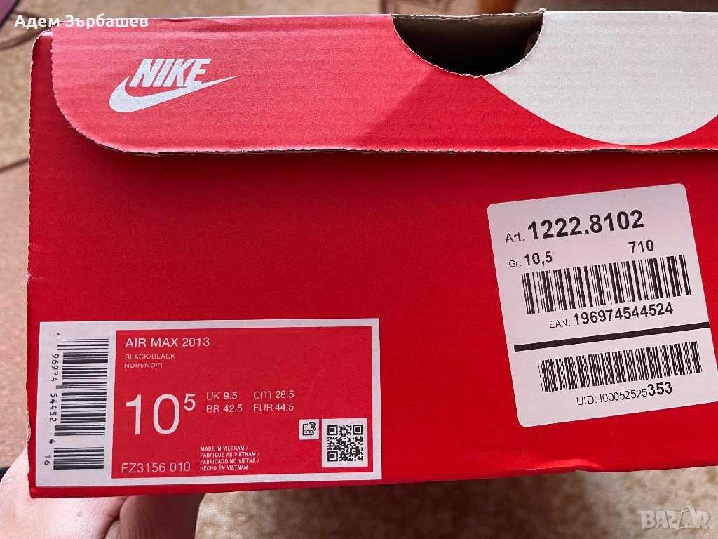 Мъжки маратонки Nike air max 2013 черни 44.5 → Обява 54350355