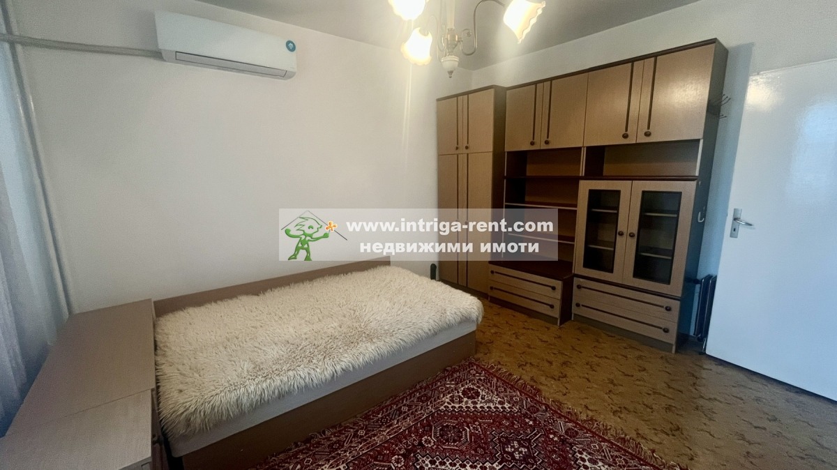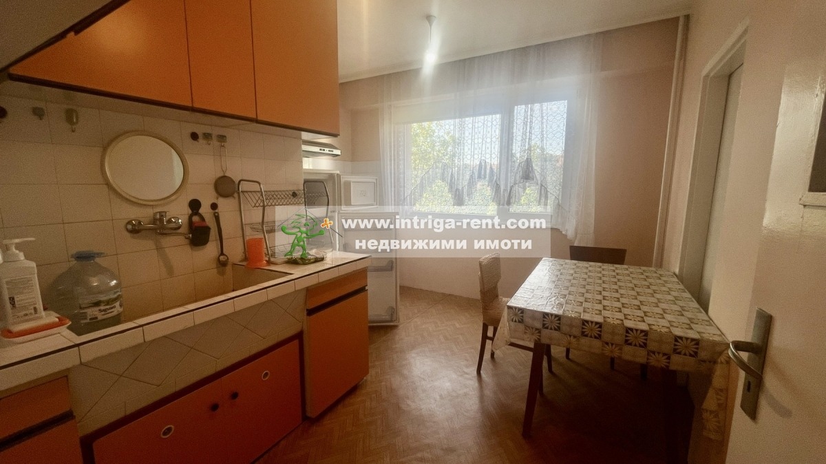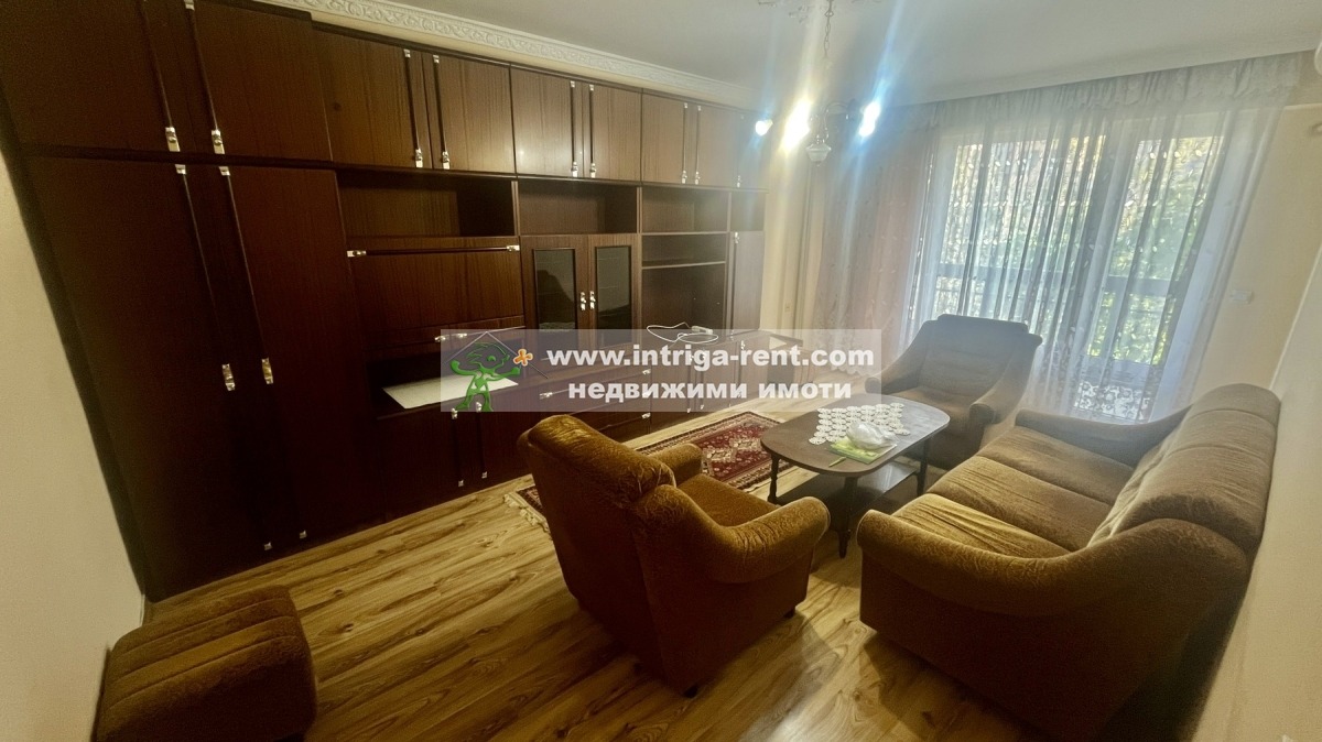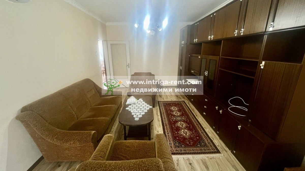 Недвижими имоти Интрига отдаваме под наем класически тристаен апартамент, намираш се в напълно реновирана сграда в най-зелената и спокойна част на Хасково. Жилището предлага реална площ от 83 кв.м., разпределени интелигентно между уютен хол, трапезария с кухня и две самостоятелни спални. Напълно обзаведен и оборудван за нуждите на едно семейство, апартаментът се отличава с отлична топлоизолация, климатизирани помещения и баня с вана за Вашата пълна релаксация. Тук удобството на градския транспорт и близостта до парк Кенана срещат предимството на свободното паркиране и обновената градска среда.