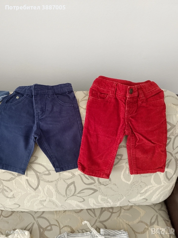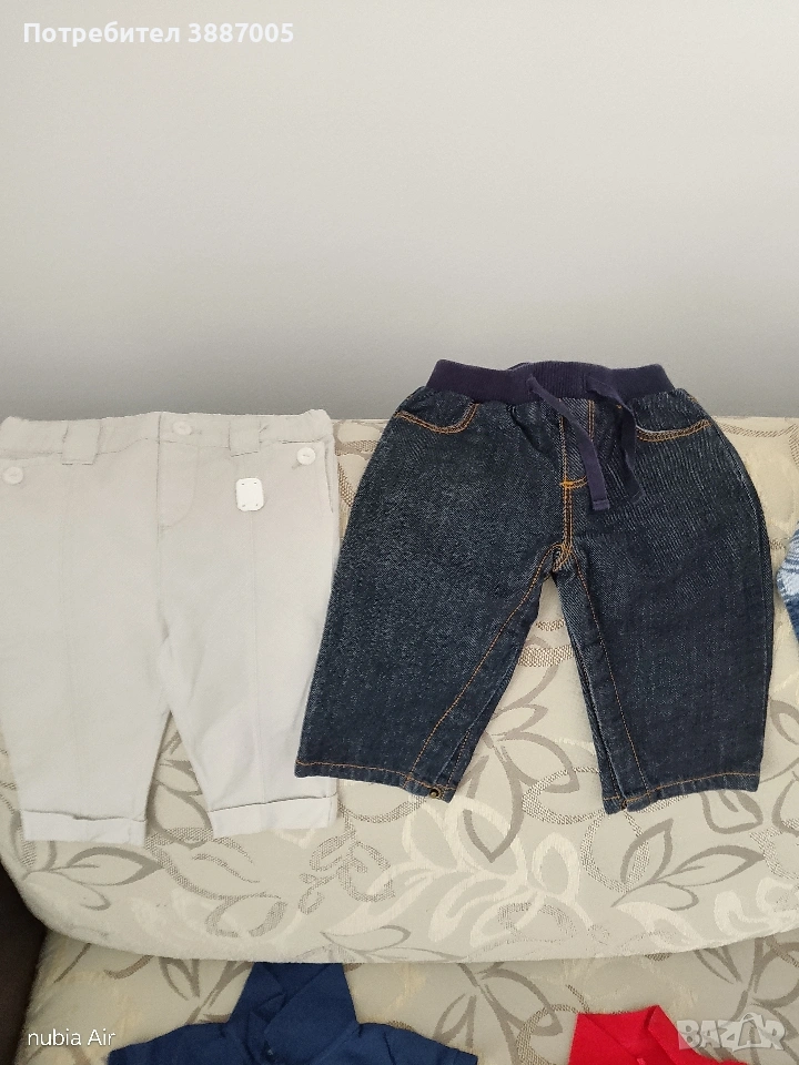 Лота съдържа Маркови панталони и бодита в отлично състояние. 2бр зимни дънки и джинси. 2бр пролетни панталони 1 фланелка и2бр летни и 2 бр. зимни богата. beybicoton, BG beybi, GAP.