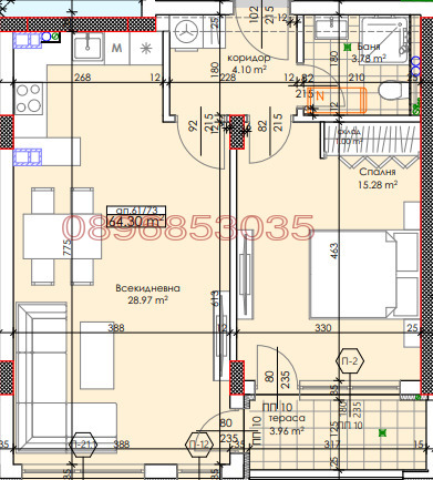 - всекидневна с кухненски бокс 28.97 кв.м.
