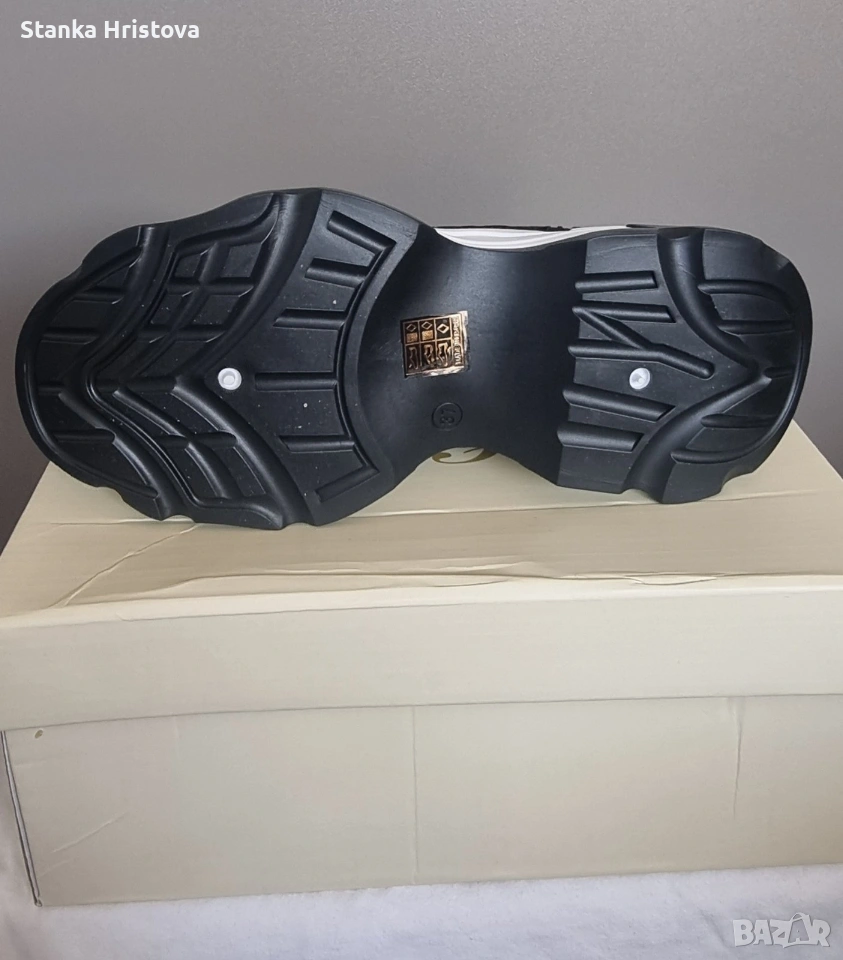 Продавам чисто нови Дамски маратонки, комбинация от лека еко кожа и текстил, обсипани с бели черни камъчета. Страшно леки и удобни.