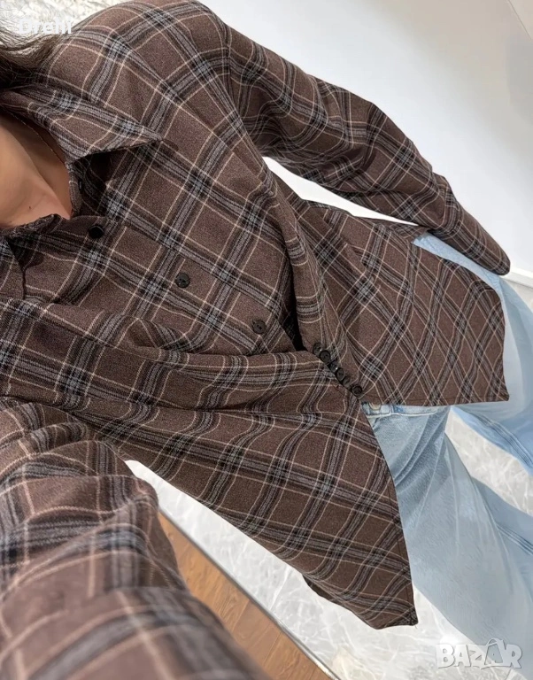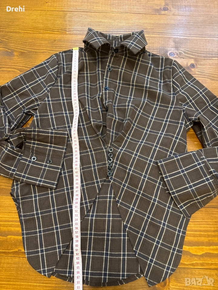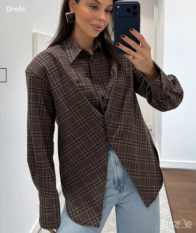 Дамска стилна и интересна риза кафяво каре размер М