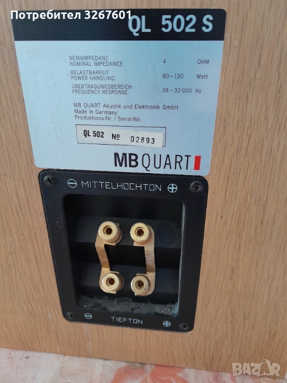 Внос от Германия.Тонколони MB QUART QL 502 S .4 Ohms 130w. Качествен звук без забележки по говорителите .
