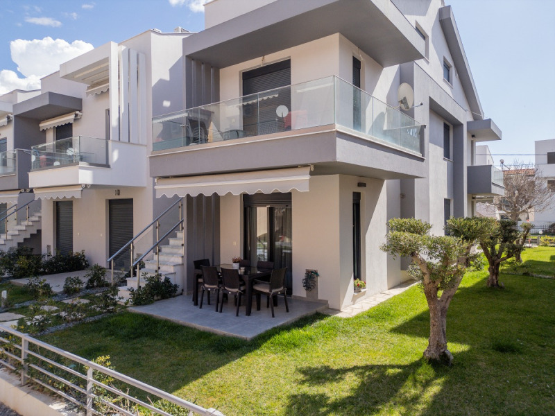 Агенция за недвижими имоти МИРА предлага за продажба новопостроен апартамент, разположен на приземен етаж в поддържан комплекс в селището Ерато, Паралия Офринио, Кавала