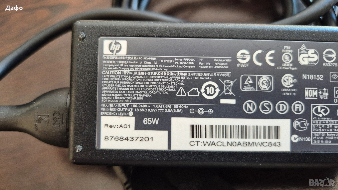 Оригинално зарядно за HP 18.5V 3.5A → Обява 54352206