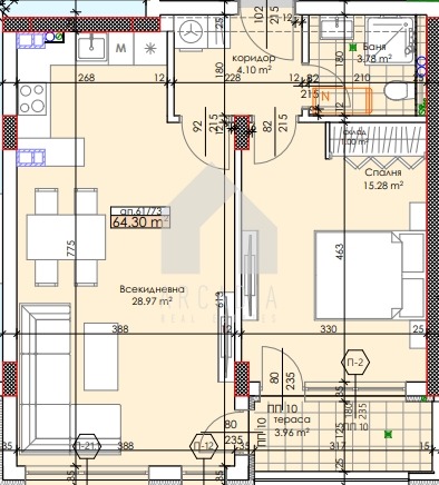 - всекидневна с кухненски бокс 28.97 кв.м.