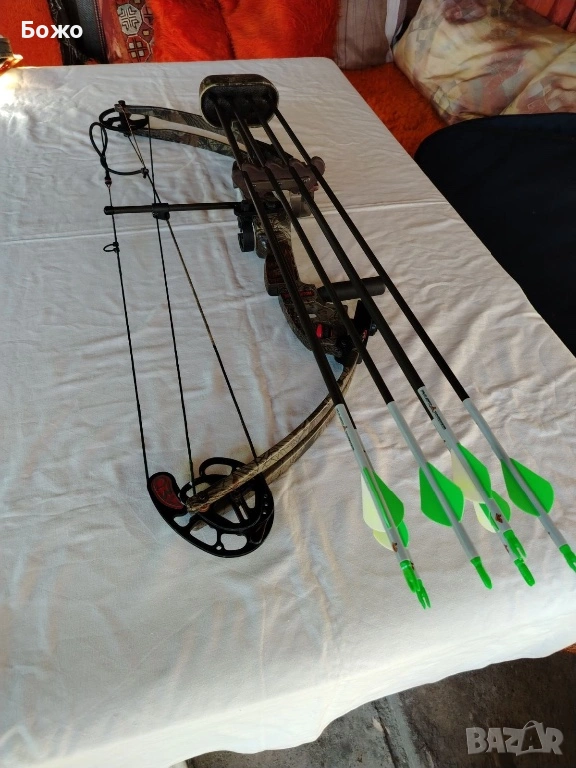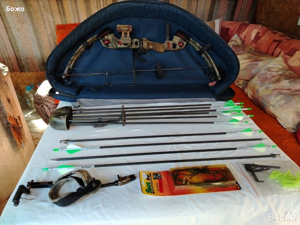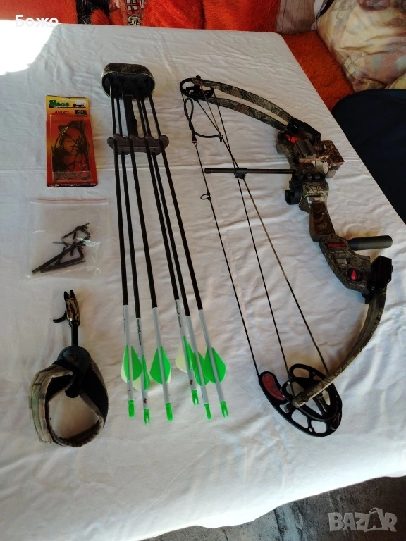 Заедно с лъка купувачът също така ще получи и колчана, спусъка, плюс шест броя чисто нови качествени и маркови карбонови стрели със спайн 350. Към него има и комплект ключове шестограми, подходящи за всяко винтче по корпуса му. Ще му изпратя и старата тетива, която е запазена и при нужда може да се ползва още дълго време.