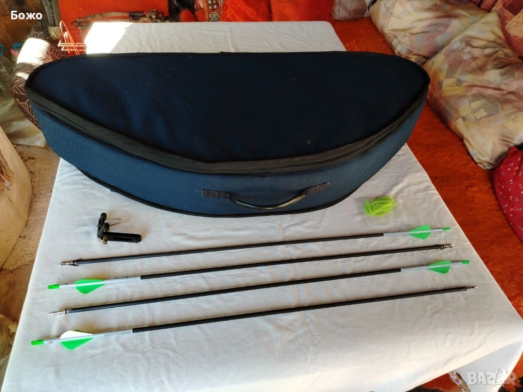 Ако купувачът желае, мога да му предложа още и тапициран калъф-куфар за транспортиране и за съхранение на лъка, който разполага с множество отделения и при това може да се носи и на рамо, резервна маркова падаща подставка за стрели “COBRA” (някои казват, че те са по-добри от традиционните), още четири броя карбонови стрели, които в този случай са оборудвани с ловни върхове и няколко резервни стабилизатори за стрелите.