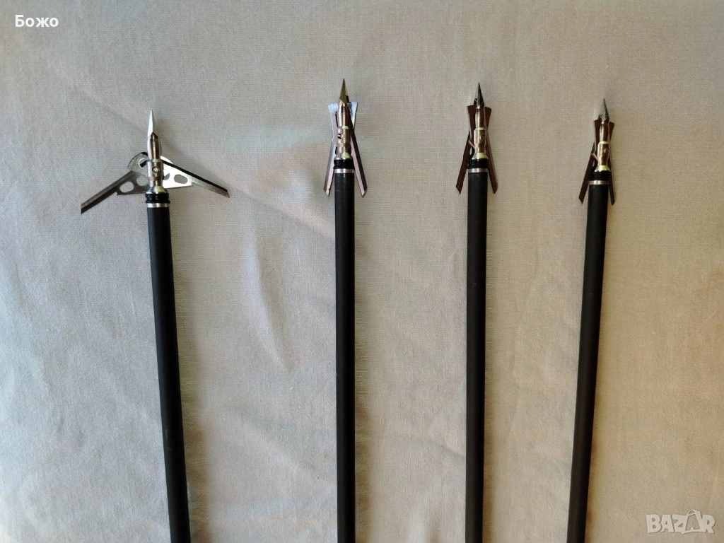 Ловните върхове са механични, летят затворени, а при удар в целта режещите остриета се разтварят и правят прорез от два инча, това са пет сантиметра. Марката на върховете е “RAGE” - “ярост”, а моделът - “Hypodermic”. Предпочитани са от ловците с лък по целия свят и ако напишете в Гугъл името и модела, ще видите за какво става дума.