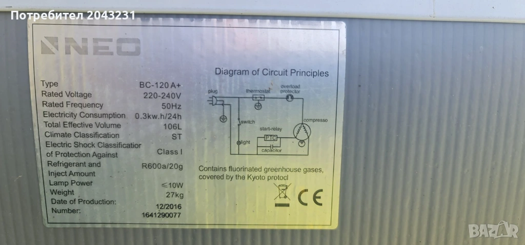 Хладилник Neo BC-120 A+ → Обява 54352900